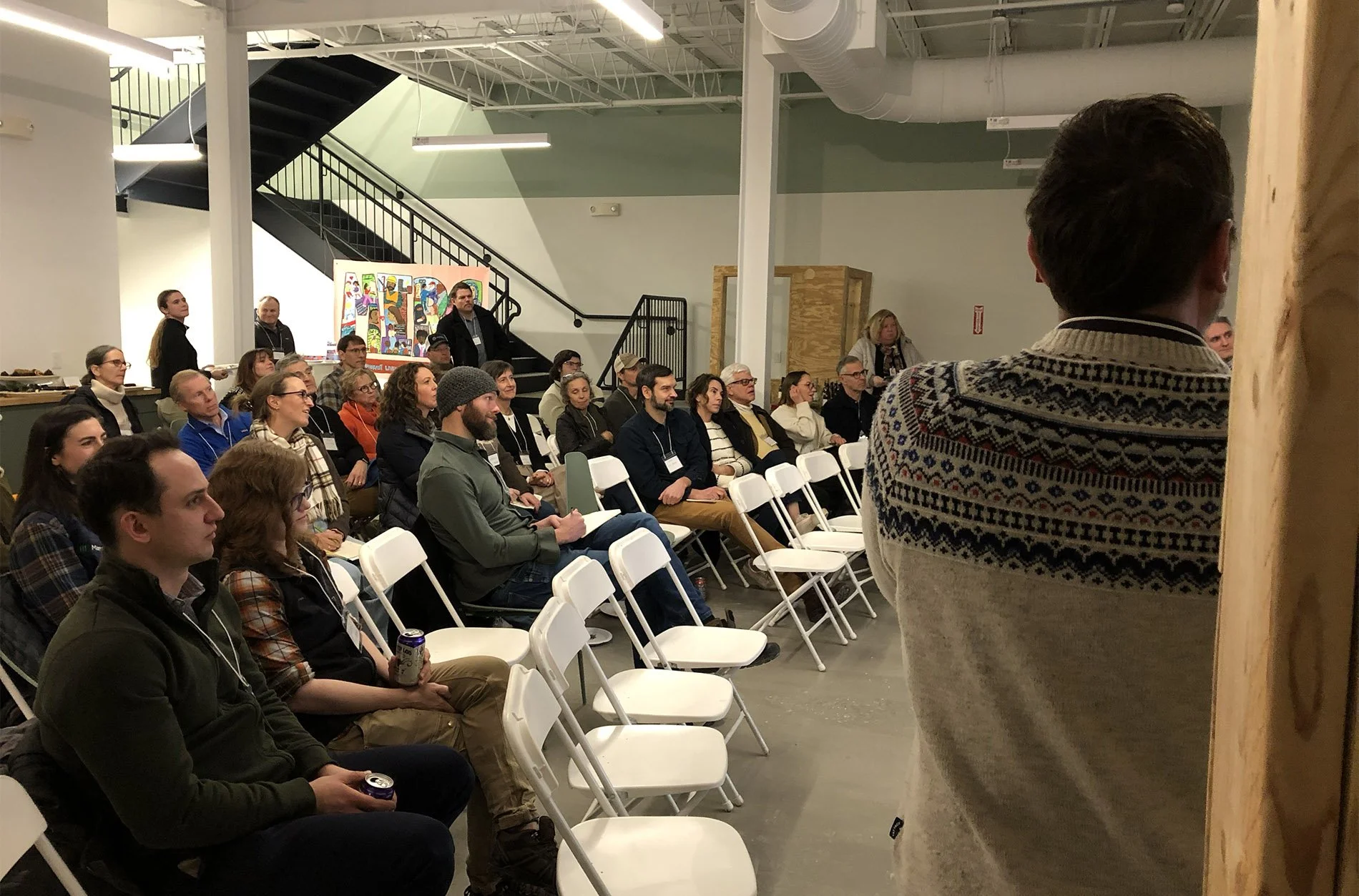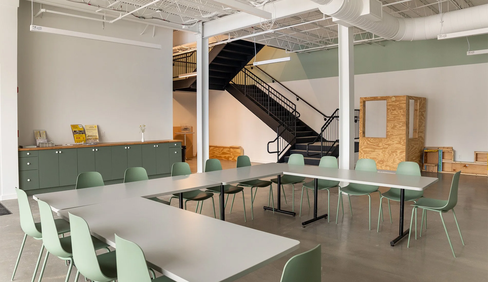 Located in the heart of downtown Freeport, passivhausMAINE’s new headquarters is a thoughtfully designed, light-filled space built to support education, collaboration, and meaningful work. The space is available for events, trainings, community meetings, and private or freelance work, and is designed to comfortably host both large gatherings and focused individual work.